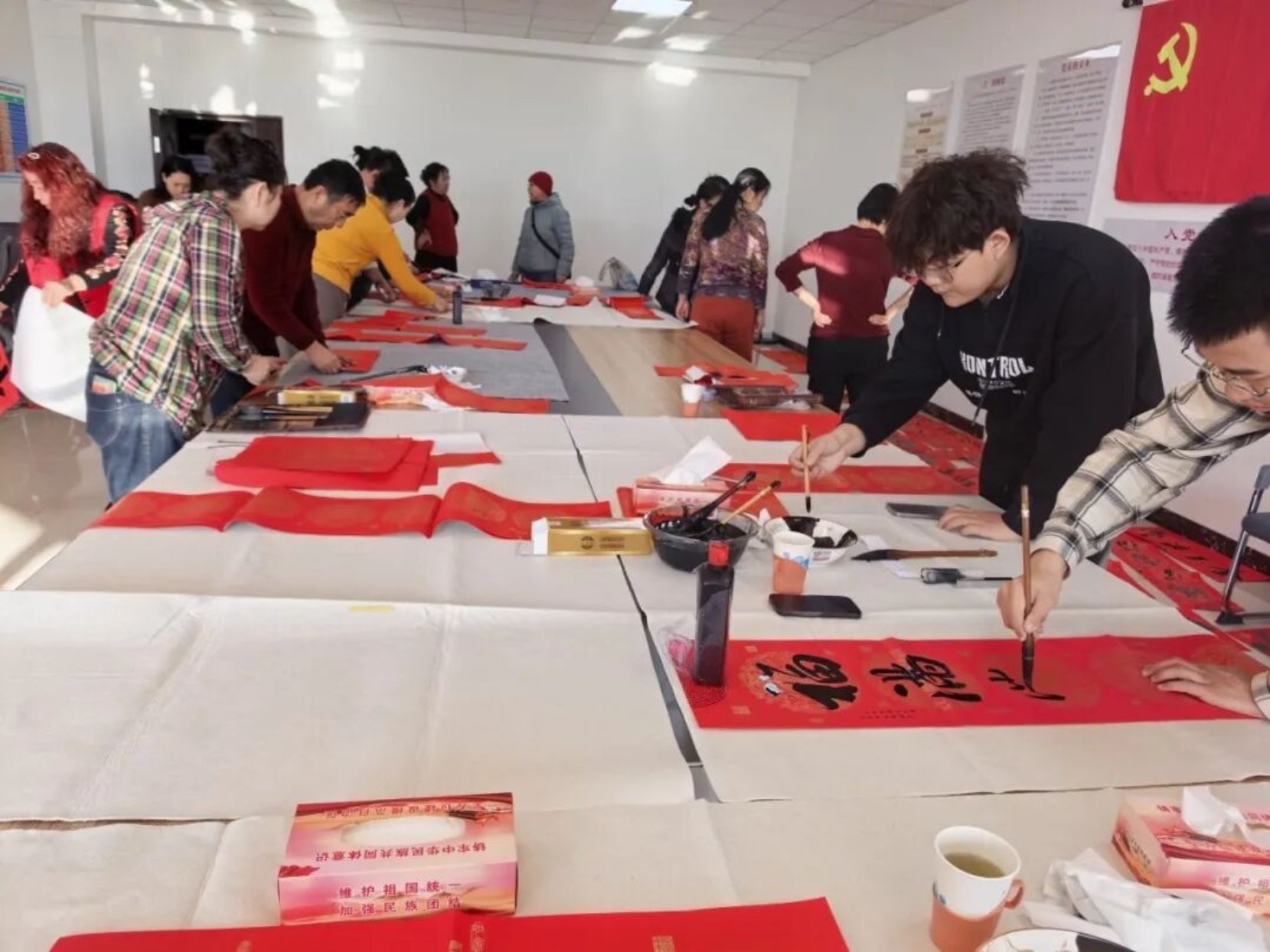 新春将至,年味渐浓。为弘扬中华优秀传统文化,营造喜庆祥和的节日氛围,锦泰社区党支部联合佰泰物业、内蒙古竹石文化发展有限公司,在社区会议室举办“党建引领聚资源,文化惠民暖人心”迎新春写春联活动。