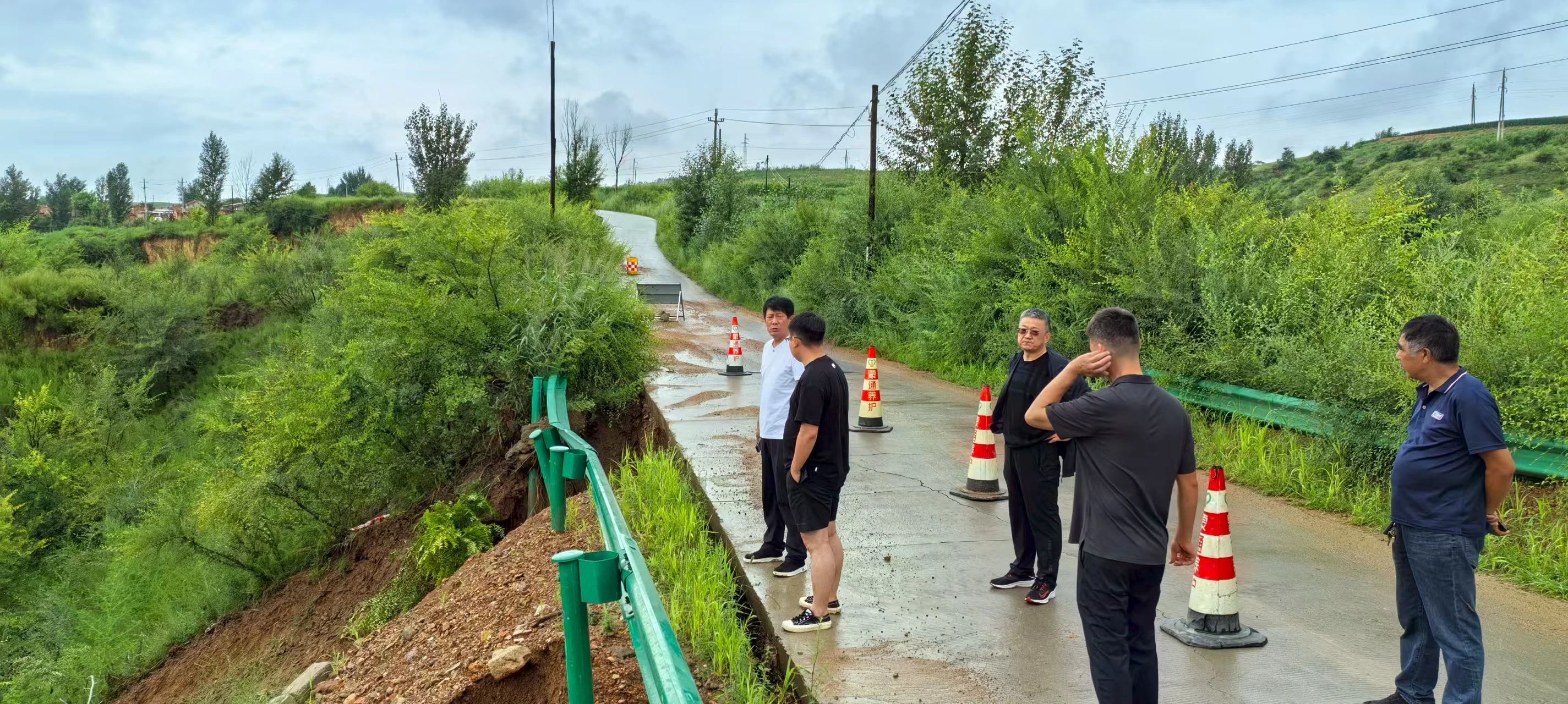 7月28日凌晨,急促的消息打破了雨夜的沉寂:12组主干道遭山洪严重损毁,二次坍塌风险迫在眉睫!赵有强没有丝毫犹豫,立刻带领村干部和党员冲向现场。泥水没过脚踝,雨水模糊视线,他们第一时间设置警戒标识、摆放警示牌,安排人员在危险路段两端值守,指挥车辆小心绕行。