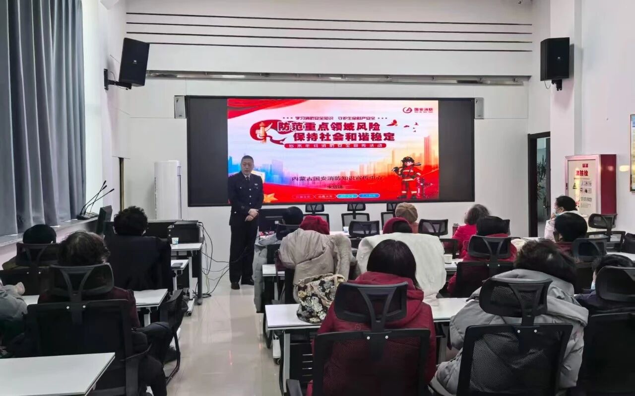 1月7日上午,松山区玉龙街道王府社区联合内蒙古国安消防知识宣传中心,开展防火救援安全知识专题讲座,为辖区居民送上新年“消防安全第一课”。