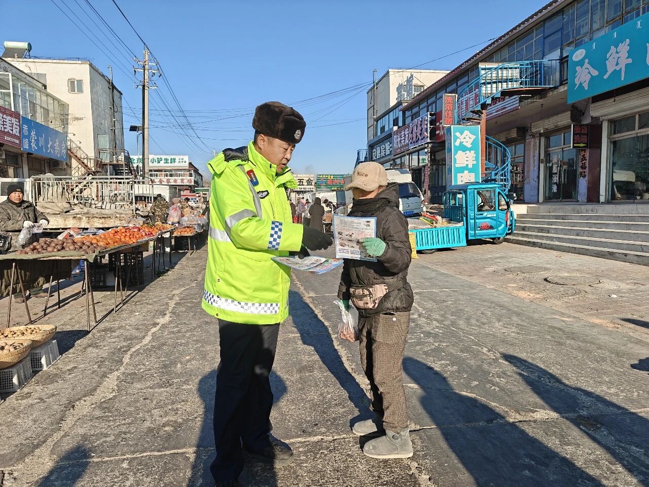 农村老年群体交通安全意识和自我防护能力相对薄弱,是交通事故的高发群体。1月21日,当铺地中队的民警们深入辖区大木头沟村,开展了一场针对性强、形式接地气的交通安全宣传活动,为辖区老年人送上“定制化”安全守护。
