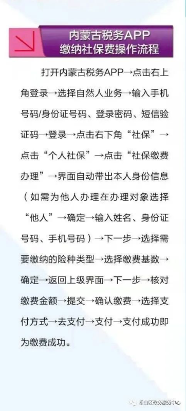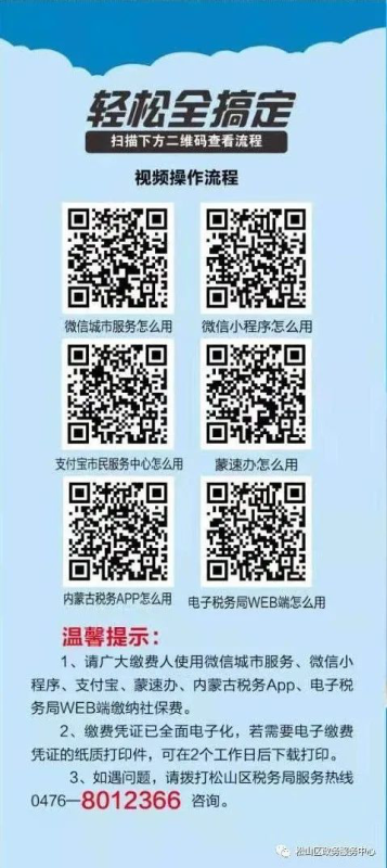 广大缴费人请使用微信、支付宝、蒙速办、内蒙税务App缴纳社保费,手机缴费方便快捷,省时省力,非接触式缴费,更健康。让你足不出户就实现缴费,有问题请拨打松山区税务局服务热线电话0476—8012366咨询。