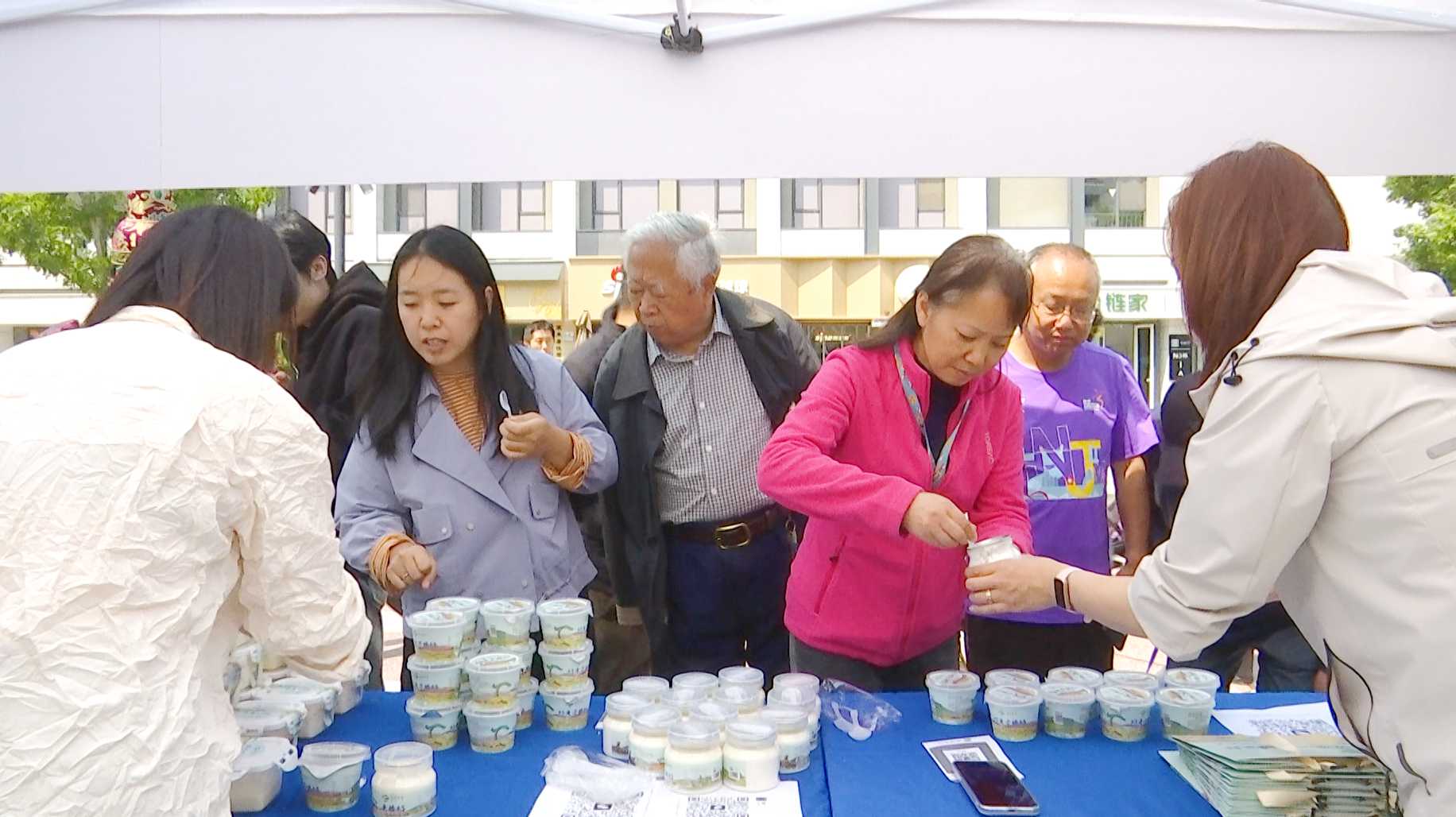 在穆家营子镇为农服务公司展位前,人头攒动,热闹非凡。“穆营甄选”奶皮子酸奶吸引了社区居民驻足品尝并纷纷购买,大家对该产品的独特风味赞不绝口。
