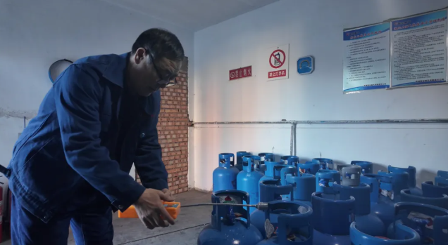 在赤峰富龙燃气有限责任公司桥西营业部,送气工正对出站钢瓶进行最后检查。“我们坚持安全到户,从出站严查到上门安装测漏,每个环节必须按规操作。特别是发现胶管老化等隐患,我们会现场协助更换,确保整改到位才离开,让大家过年用气安心。”赤峰富龙燃气有限责任公司桥西营业部站长左文生介绍道。