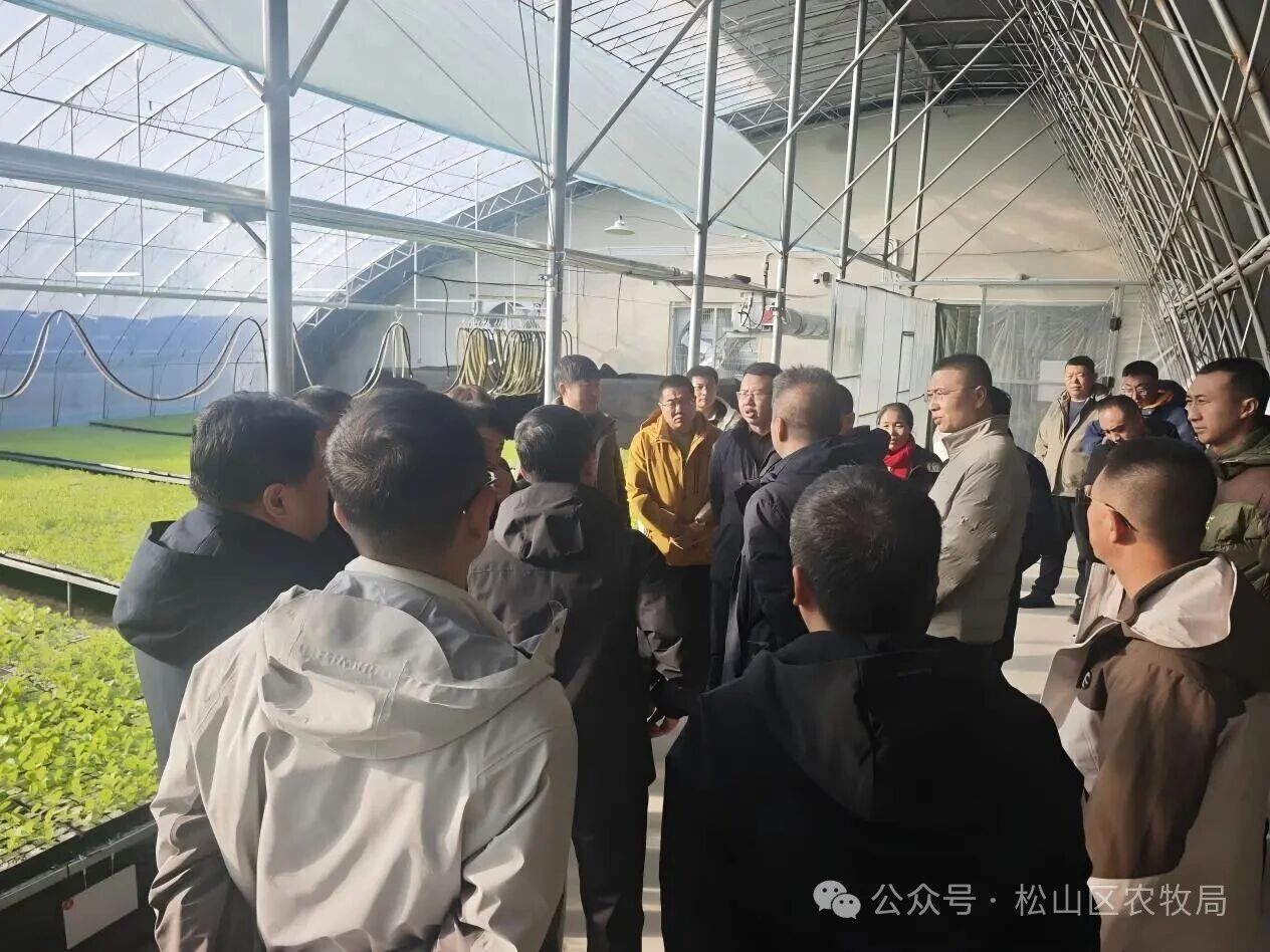 调研首站为松山区佳旺农业育苗中心,调研组围绕温室大棚结构、现代化育苗技术、市场前景及就业带动作用展开调研。该育苗中心占地130亩、投资2500万元,建26个日照育苗棚,年均可培育优质苗1.5亿株,还通过集中供暖、铺地埋高压电缆强化安全防护,提供80-100个长期岗位、300-500个临时岗位,缓解当地就业压力,助力乡村振兴。