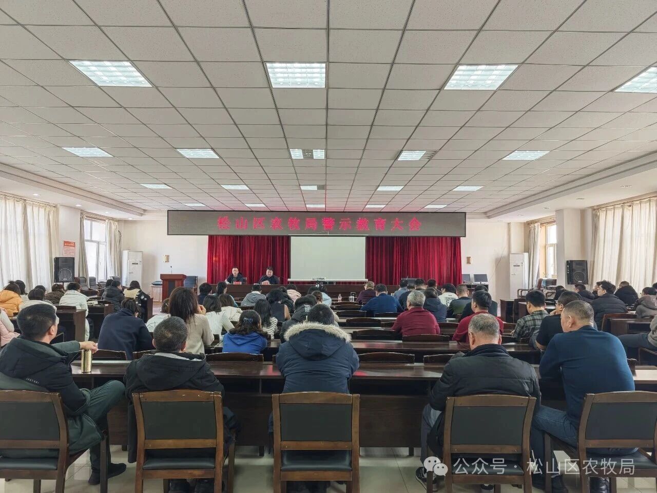 1月8日上午,松山区农牧局召开警示教育大会,局党组书记、局长黄建东出席会议并讲话,区纪委派驻农牧局纪检监察组组长马宗威到会指导。局领导班子成员及全体干部职工参加会议。