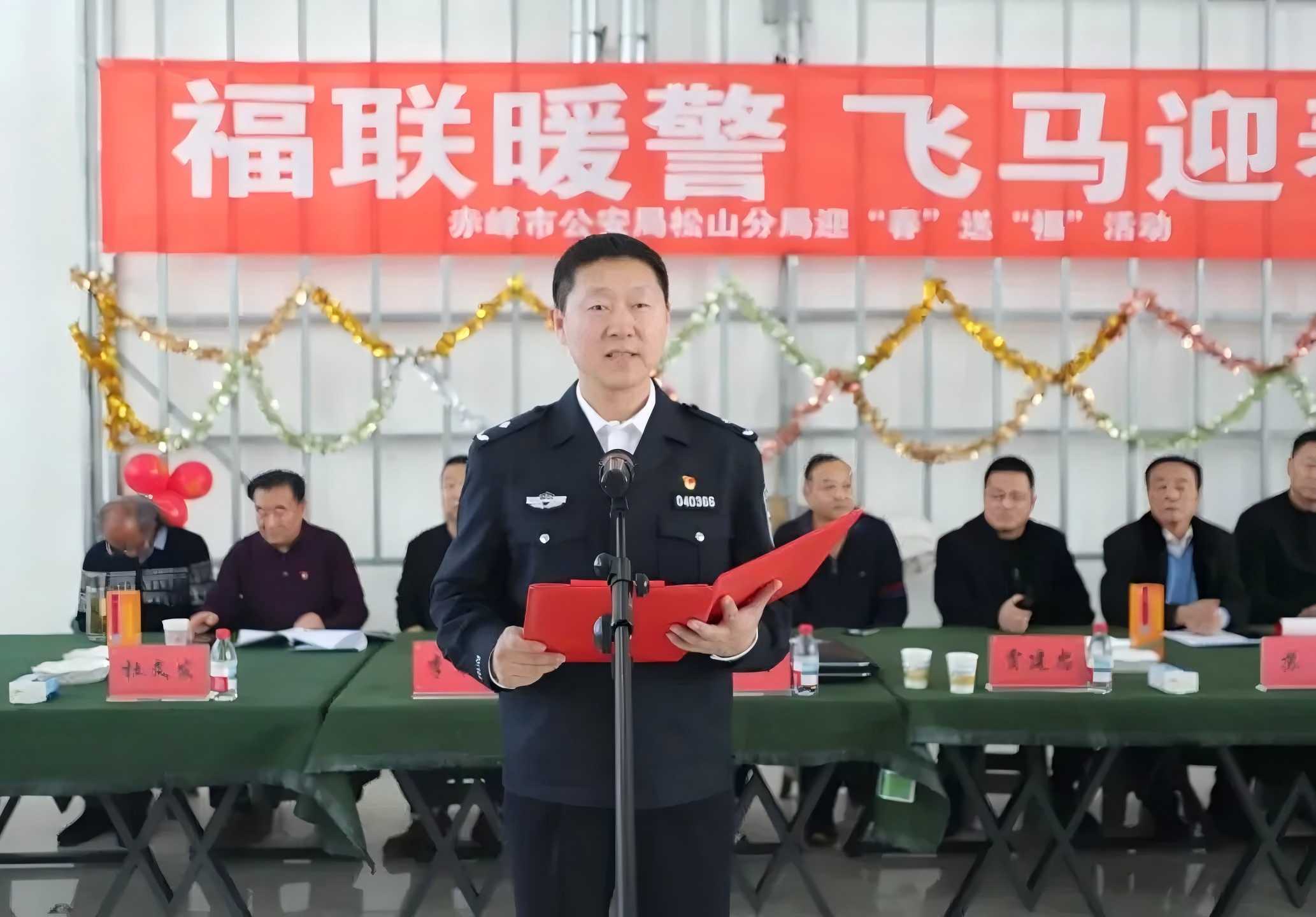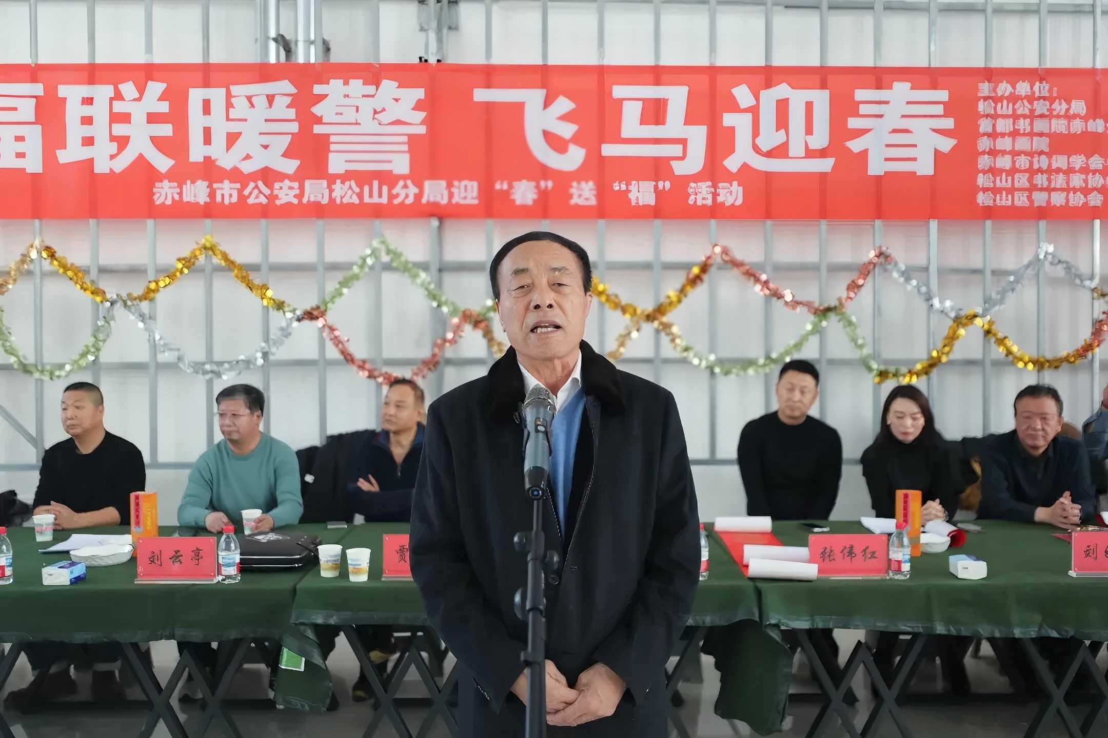 苏涛院长代表40位书画家向奋战在一线的全体民辅警们,致以新春的祝福和美好的祝愿!他表示,松山公安用忠诚和担当诠释着责任与使命,用汗水与奉献守护平安,为城市的安危和老百姓的安全,作出了特殊的贡献。此次谨以写春联、送福字的方式,向广大松山公安民辅警表示由衷敬意和赞赏。