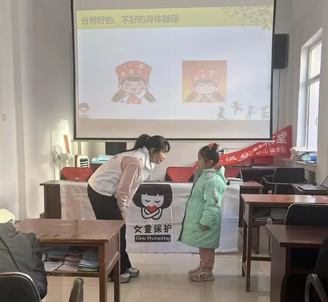 为深入开展“北疆鸿雁”巾帼志愿服务工作,增强少年儿童的自我保护意识,帮助他们学习掌握预防性侵害的知识与技巧,保护儿童远离性侵害,1月21日,女童保护项目内蒙古赤峰市妇联团队松山区分队志愿者讲师李学翠走进穆家营子镇官仓沟村,开展维权关爱行动,为家长及儿童20余人开展“女童保护”儿童防性侵公益课——“爱护我们的身体”。