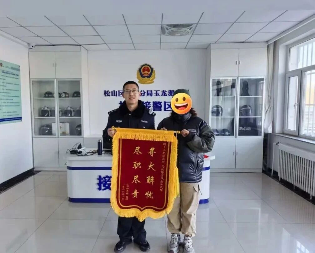 “多亏了有你们,实在太感谢你们了!”刘女士边说边将一面印有“尽职尽责 寻犬解忧”的锦旗交到赤峰市公安局松山分局玉龙派出所民警手中,对民警们帮忙找回其丢失的爱犬表示由衷感激。