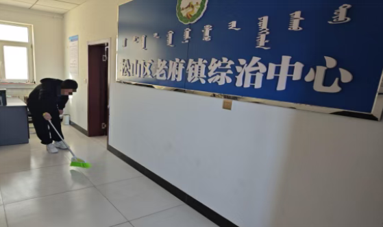集中教育结束后,司法所组织全体社矫对象到老府镇综治中心及群众接待大厅开展了集体公益劳动。
