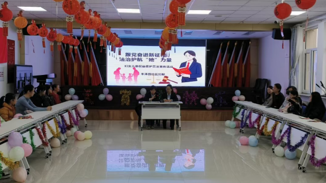 为进一步提升辖区妇女与未成年人的法治意识与维权能力,营造尊法学法守法用法的良好社区氛围,在元宵佳节及“三八”妇女节到来之际,松山区铁东街道丰泽园社区妇联特邀专业律师走进社区,开展以“跟党奋进新征程,法治护航‘她’力量”为主题的普法宣讲活动,重点普及《中华人民共和国妇女权益保障法》《中华人民共和国反家庭暴力法》《中华人民共和国未成年人保护法》等法律法规,把法律知识与维权服务送到居民家门口。