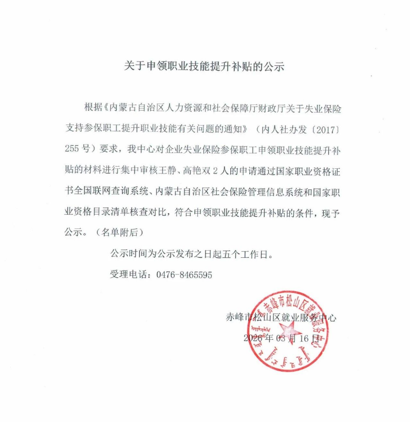 来源:赤峰市松山区就业服务中心 发布时间:2026-03-17 16:08