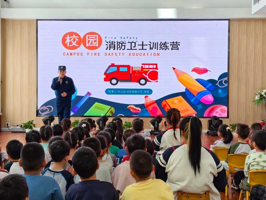 消防安全,始于认知。活动伊始,消防大队队员走进多功能厅,为大班幼儿带来生动的消防知识课堂。消防员结合幼儿的认知特点,用通俗易懂的语言讲解火灾危害、火场逃生要点、正确报警方法等核心知识,将抽象的安全常识转化为具象的生活指引。孩子们凝神倾听、积极互动,在一问一答中读懂消防安全的重要意义,在潜移默化中树立自我保护意识,为应对突发情况筑牢知识根基。