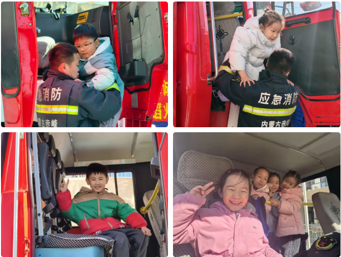 消防车与逃生帐篷参观互动环节,点燃了孩子们的期待。消防车静静伫立,各类装备整齐陈列,消防员逐一讲解车辆功能与装备用途。孩子们凝神观察、踊跃提问,眼中满是好奇与崇拜。大家不仅亲手触摸器材、体验装备,更走进逃生帐篷沉浸式感受火场氛围,在“零距离”接触中,真切读懂职业的神圣,让消防安全的种子深深扎根心底。