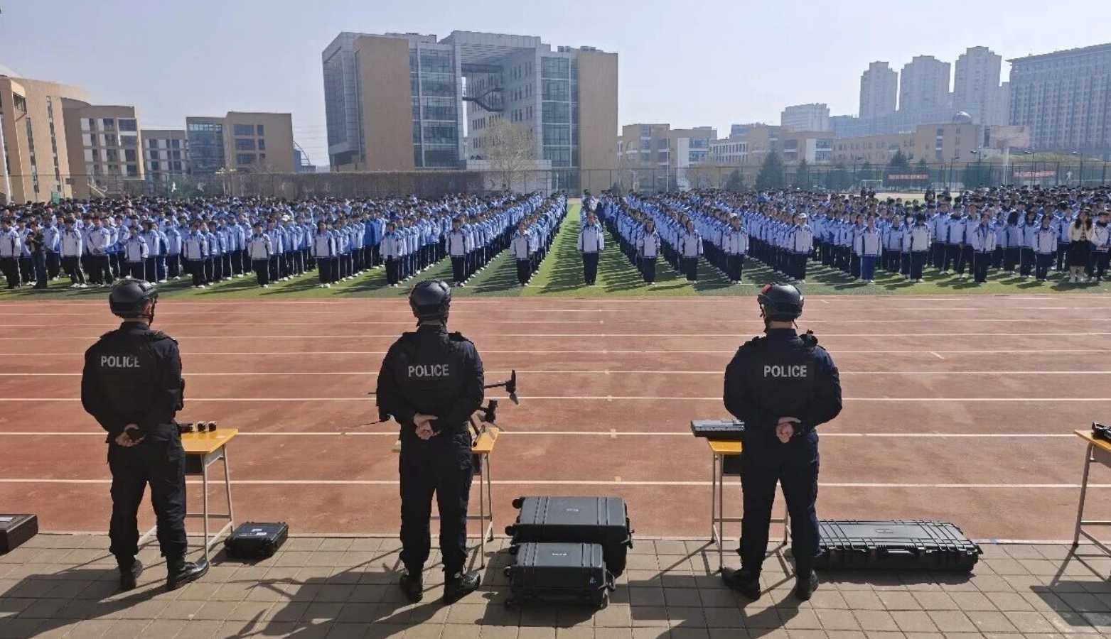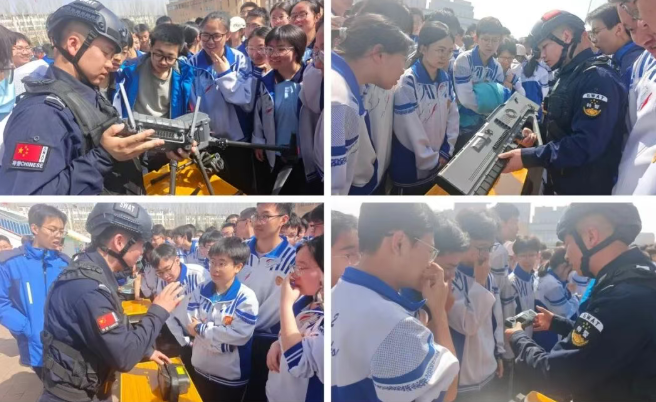 讲座结束后,民警现场展示了警用无人机、无人机反制枪、夜视仪等专业警用装备,通过近距离演示、一对一讲解的方式,向同学们介绍各类装备的功能特点、使用场景及在反恐处突、安保维稳、应急救援等工作中的重要作用。现场互动氛围热烈,同学们积极提问、踊跃参与,民警耐心细致解答每一个问题,让大家直观感受公安特警队伍的专业力量,进一步增强了对国家安全工作的认知与认同。
