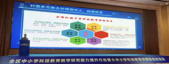 同时,赤峰红旗中学作为全国人工智能基地校、松山区科学教育的品牌学校,以《智创融合 育见未来—以人工智能为支点,构建科学教育创新育人新生态》为题进行经验分享,充分展现了松山区科学教育特色发展成效在各学校落地生根、竞相迸发的良好态势。