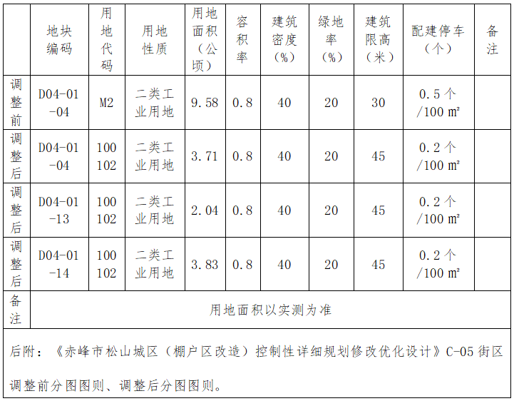 调整前后用地控制指标对比如下: