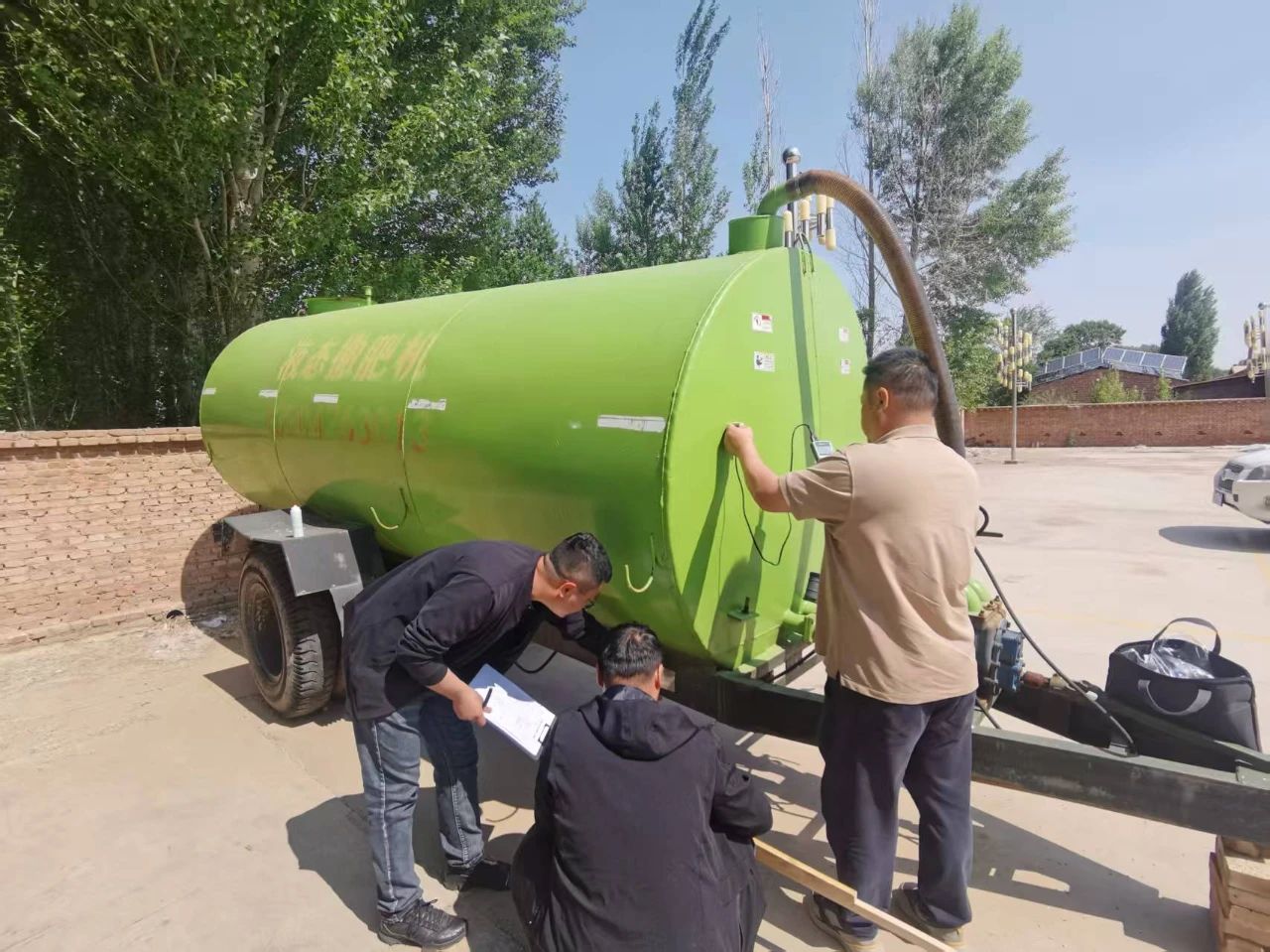 5月24日,自治区农牧厅核查组、松山区农牧局白晓辉核查本辖区申请补贴的10台撒肥机,镇任国珍陪同检查。