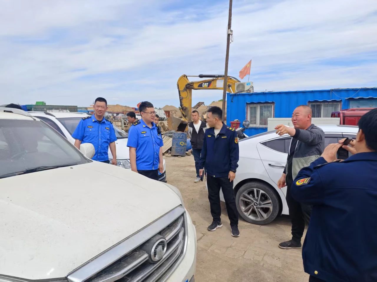 5月23日,镇执法队配合区城管局对已征地块乱停乱放进行清理。