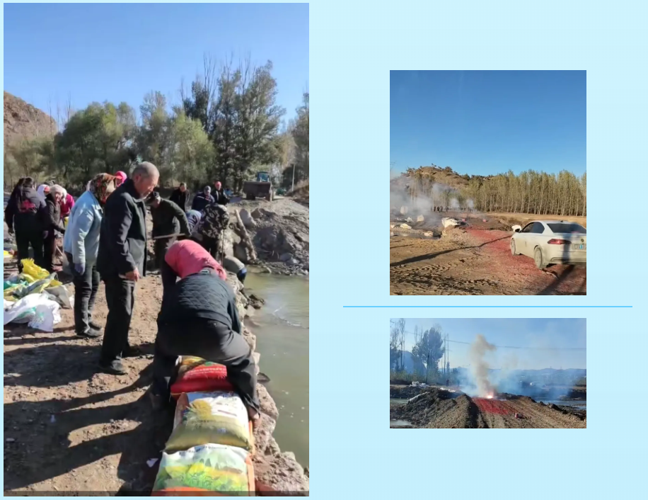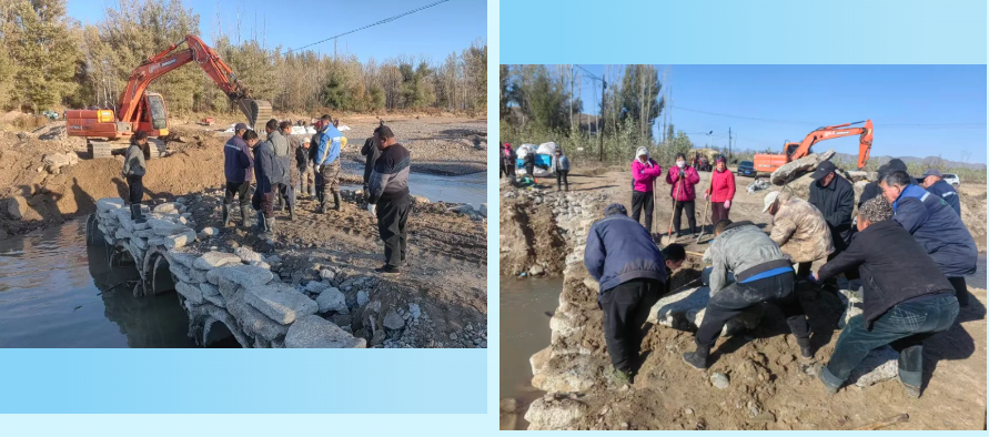村党组织书记亲自带队,针对作业环境复杂的特点采用了 人工+机械相结合的作业模式,提前调配6台大型机械入场作业,置放涵管、清理淤堵、修整边坡;村党员干部率先垂范,组建党员先锋队带头投身施工一线,配合填充沙袋墩包袋、清理碎石和垃圾;村民自发组建志愿服务队,主动参与建材搬运、路面平整,抢修工作高效推进。