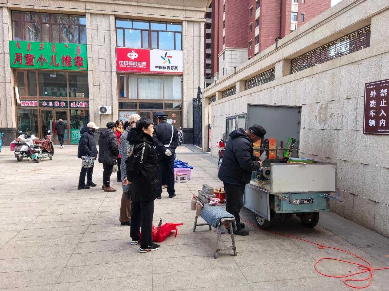 在便民服务区里,居民拿着自家的刀具排队登记,磨刀师傅娴熟地打磨着菜刀、剪刀,只见磨刀师傅边磨边往刀上蘸水,边磨边用大拇指试刀锋,直到满意为止。社区志愿者在一旁向居民宣传惠民政策,收集居民的建议,进一步拉近了居民和社区之间的距离。