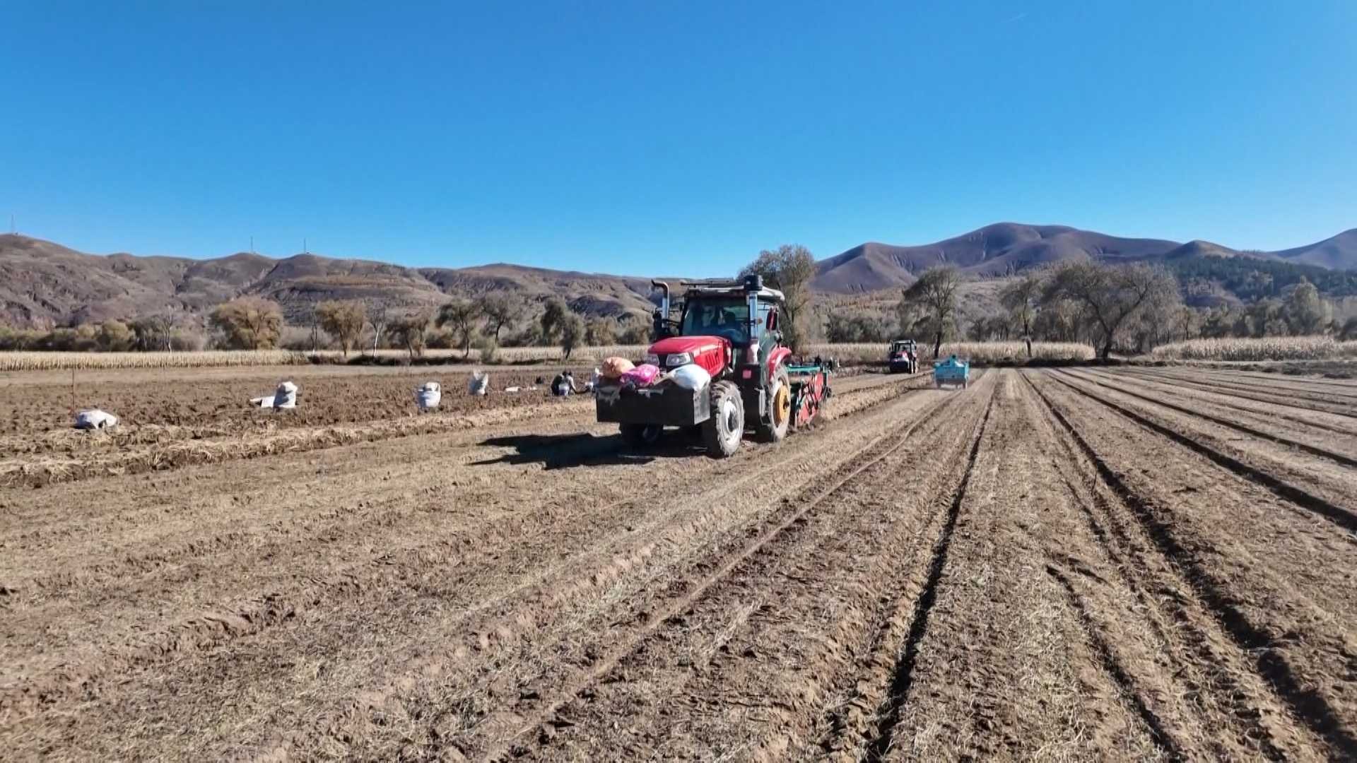 走进小庙子村宏都合作社的种植田,机械穿梭田间,村民们紧随其后,将刚挖出的党参抖去泥土、整齐码放,空气中弥漫着淡淡的药香。宏都合作社成立于2014年,如今,已成为村里药材产业的龙头,带动大批村民抱团发展。