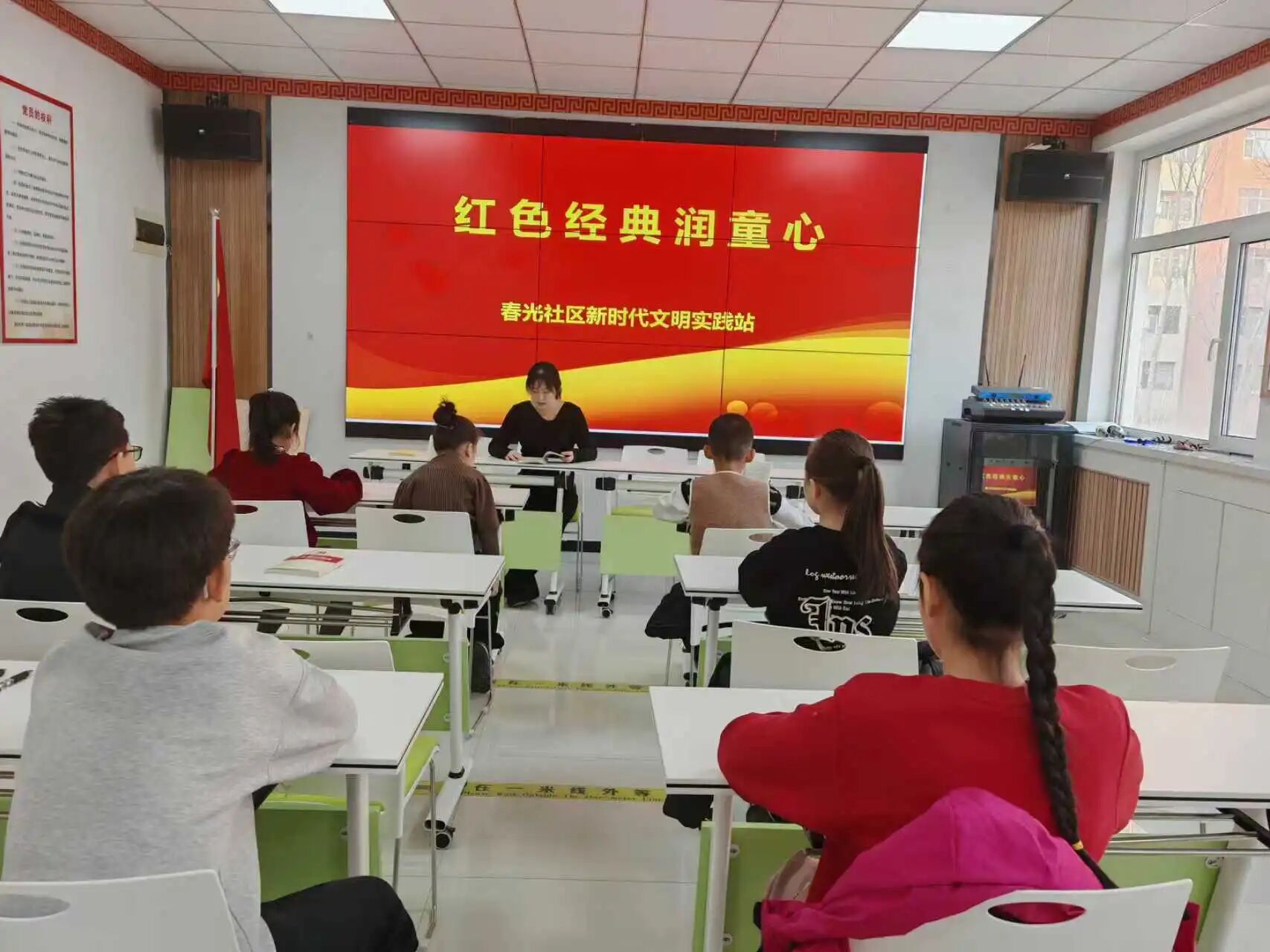 为厚植辖区未成年人的爱国情怀,引导青少年从红色经典中汲取奋进力量,铁东街道春光社区在新时代文明实践站开展“红色经典润童心”未成年人红色读物共读活动。通过共读红色书籍、自己阅读等方式让红色基因融入青少年成长血脉。