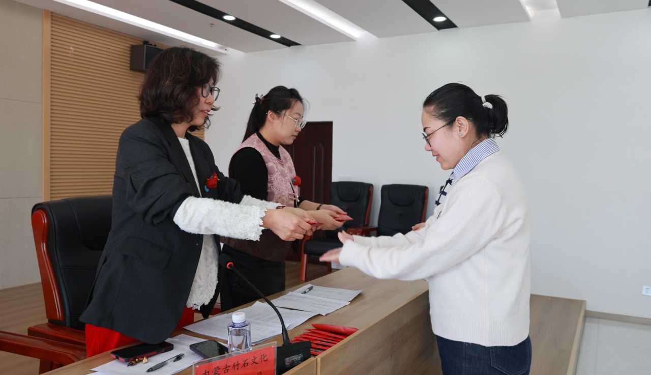 从非遗传承到就业增收,从产品热销到盈利共享,这一切的背后,离不开党建引领下多方协同的强大合力。向阳街道党工委主动作为,将就业服务深度融入基层治理,以“党建+就业”为抓手,推动内蒙古竹石文化发展有限公司党员组织关系纳入统一管理,设立“党员先锋岗”,派驻党建指导员,把党的政治优势、组织优势转化为发展效能。同时构建“培训-研发-生产-展示-销售-研学”一体化生态链,针对就业困难人员、军嫂、残疾人等群体专设“巾帼”示范岗、“扬帆计划”大学生志愿社会见习岗,累计培训700人次,提供150个灵活就业岗位。