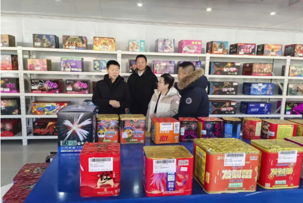 在晟典烟花售卖点,郭区长仔细查看烟花爆竹储存条件、消防设施配备、安全警示标识等情况,详细询问进货渠道、销售管理、应急值守等工作,要求经营主体严格落实安全生产主体责任,规范经营流程,强化安全防护,确保烟花爆竹销售、储存全链条安全可控。