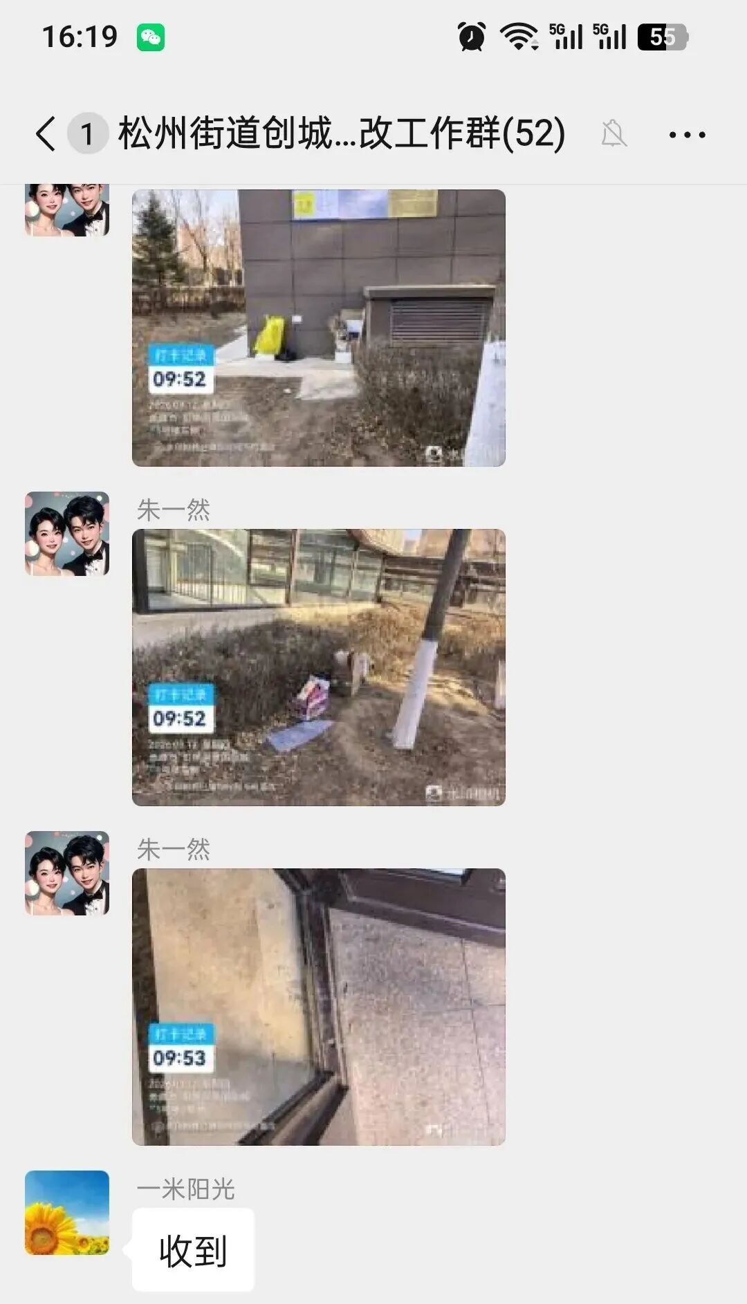 建立“随手拍、即时传” 机制。创城办人员在日常巡查中发现问题,第一时间拍照上传微信群,并附简要定位和问题描述。从楼道杂物堆积、花坛种菜到公益广告破损、卫生死角,一张张照片如同“现场办公令”,将问题直接亮在“台面上”。