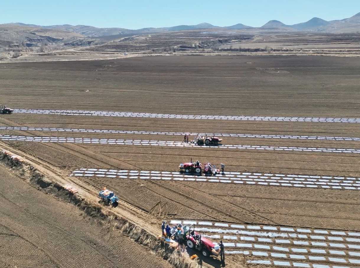 春回大地,万物复苏。当下,王府镇迎来繁忙春耕季,马铃薯种植工作正有条不紊地开展,广袤田野上处处洋溢着春耕的热潮。