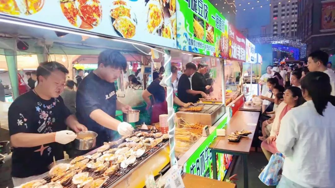 走进夜市,烤生蚝、芝麻牛排等60余种特色小吃摊位前排起长队,摊主们娴熟地翻炒、调味,香气引得行人纷纷驻足;百货区内,文创手作、潮流饰品等20余类商品,令人目不暇接。