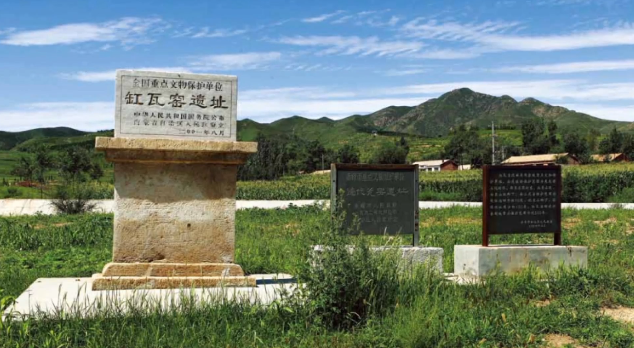缸瓦窑遗址是我国北方迄今为止,已知的辽代最大的瓷窑烧造场,通过对文献记载的考证,证明该窑始建于辽代,是辽代建立的官窑烧造场之一。从目前考古资料及调查发掘情况看,该窑址地层堆积的最下层厚20cm-80cm,出土有三彩瓷片、印花素胎瓷器瓷片、鸡冠壶、细白瓷、粗白瓷、单色釉彩瓷瓷片等,当属辽代地层。继辽之后,金、元时期继续烧造,但主要以民用瓷为主。主要有白釉碗、盘、铁绣花器皿及黑、褐釉瓷。
