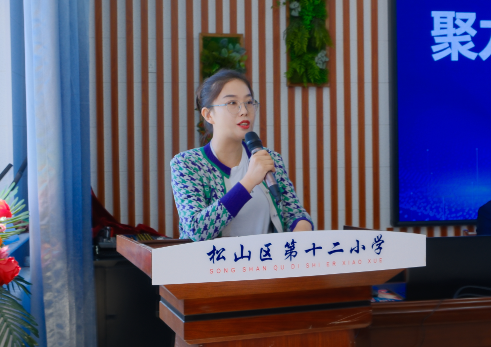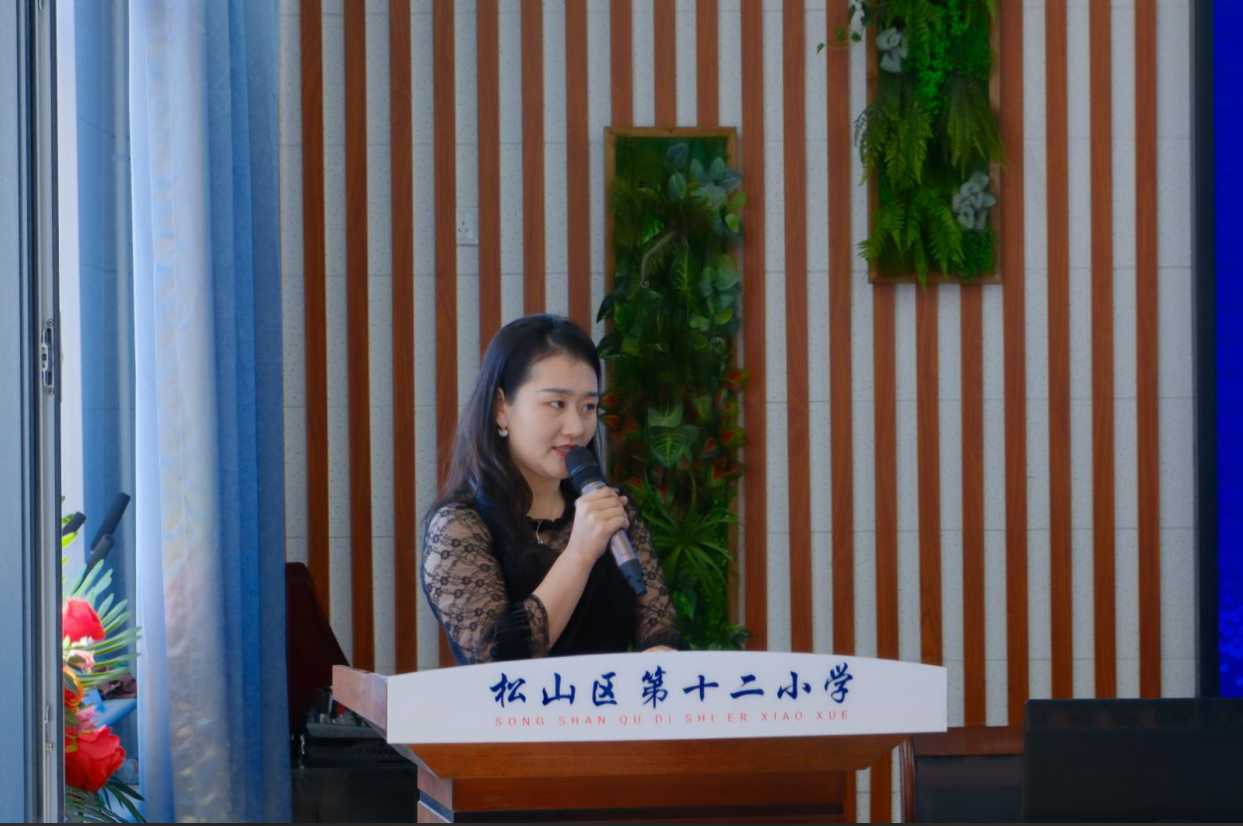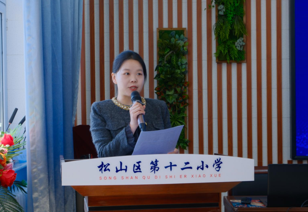 松山十二小苗青老师作为教师代表发言,表达对结对共建工作的坚定支持。