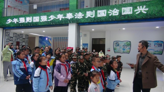 活动开始之前,孩子们穿着统一的服装,井然有序的在门前列队,可以清楚地感受到学生和家长对这次活动的重视以及期待。随后基地的讲解员为孩子们介绍了基地的建设理念和基本信息,带领着孩子们进入了法治教育基地。孩子们认真听讲了“法律底线不能触碰”板块,学习了毒品、网瘾等不良行为的危害。