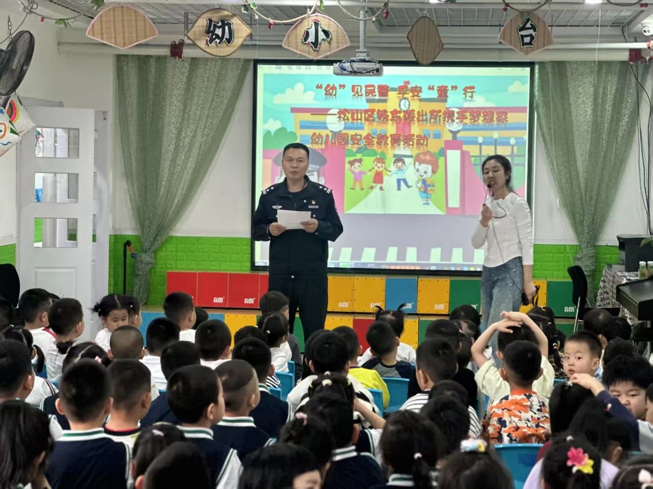 为进一步增强辖区幼儿安全意识和自我防护能力,守护幼儿健康成长,4月11日上午,松山区公安分局铁东派出所民警走进辖区梦想家幼儿园,开展“ ‘幼’见民警 平安‘童’行 ”主题安全教育活动。活动中,民警通过趣味知识讲解、情景模拟演练、警用装备展示等多元形式,为孩子们带来了一堂“沉浸式”安全启蒙课。