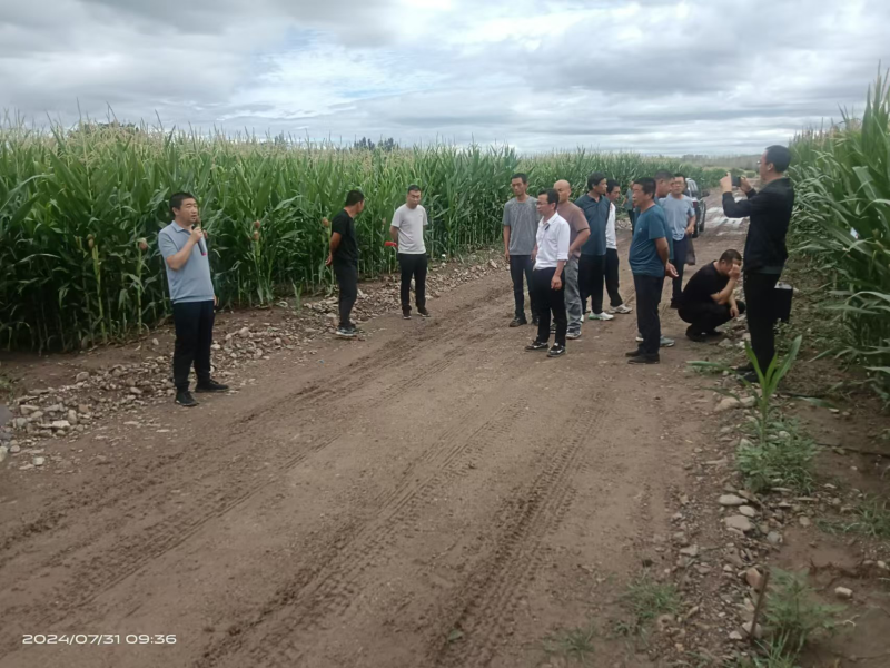 参会人员查看玉米长势,了解玉米品种、种植密度、施肥技术和栽培模式。同时,松山区农牧局相关农技人员与参会人员探讨交流促进玉米绿色发展,促进农民增收的有效办法。