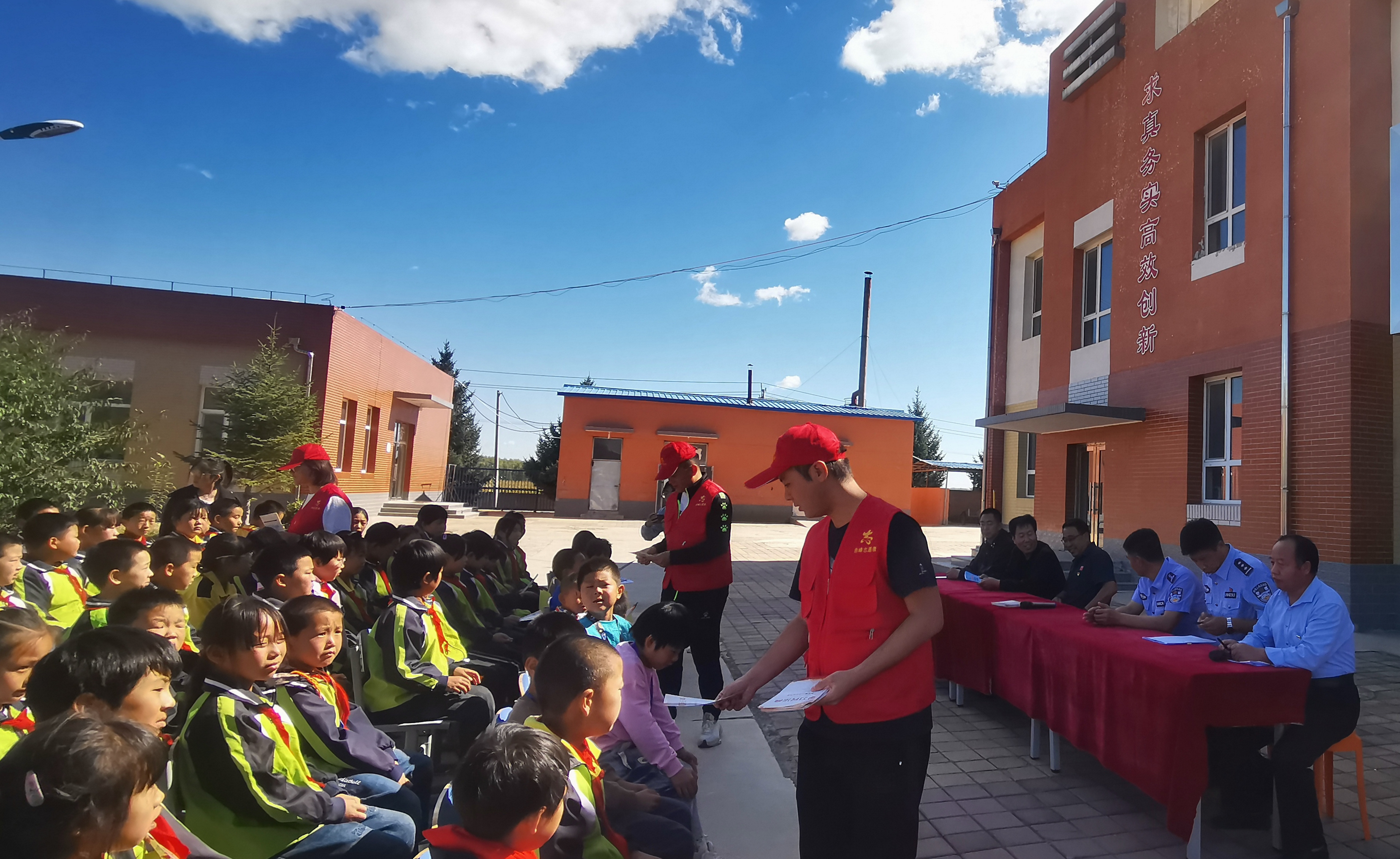 9月20日,为进一步增强青少年法治意识,营造安全的校园环境,提升师生的法治意识。老府镇新时代文明实践所联合松山区司法局老府司法所、松山区公安局老府派出所到老府镇最偏远的学校---姜家营子小学,以实现全镇普法宣传全覆盖为目的,开展以“法援惠民生,送法进校园”为主题的新时代文明实践普法宣传教育志愿服务活动,全校100余名师生参加了此次活动。