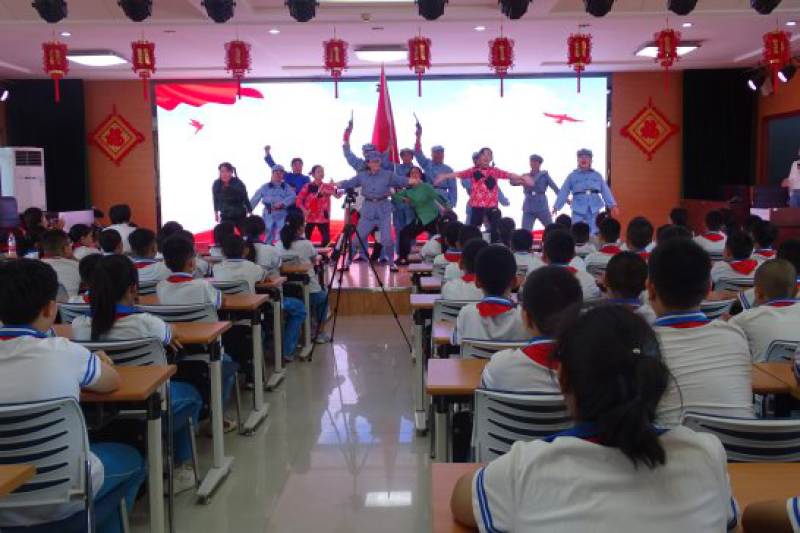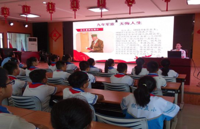 社区党委书记李静来到松山区第五小学,为广大师生开展了一节生动的爱国主义教育宣讲,主要讲述振兴红色兵站里两位老兵的事迹。