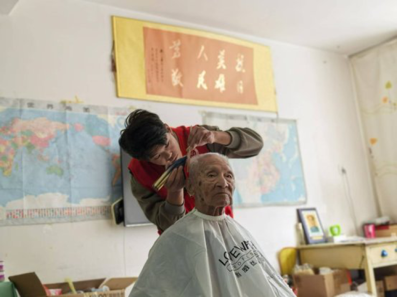 赤峰市丝励职业技能培训学校的学员志愿者,一大清早就上门为郑瑞岐老军人免费理发,志愿者热情的为老人服务,一边耐心询问老人的具体需求,一边细致入微的为老人理发。修剪完毕后,老人笑容满面,更显精神矍铄,连连称赞“志愿者理发师真是贴心,这发型显的人真精神”。理发结束后,志愿者还将屋内卫生打扫干净,归置了老人平常可以用到的物品,方便老人的日常生活。这不仅仅是一次简单的为老兵提供免费理发服务的活动,更表达了社会各界对于老兵的崇敬与关怀。