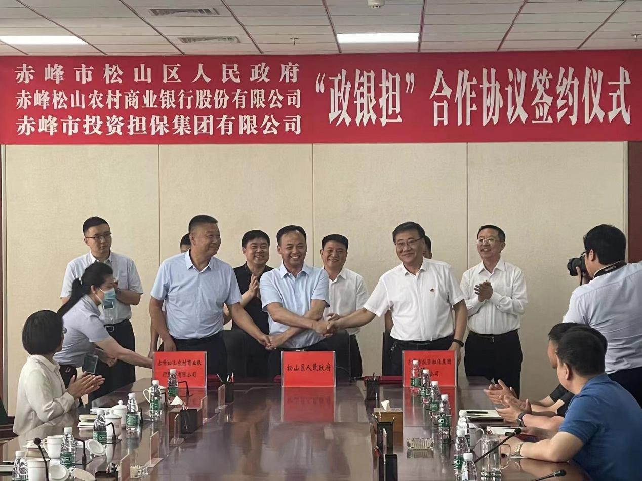 5月23日,松山区人民政府、松山农商行与赤峰市投资担保集团签订了“政银担”战略合作协议。区委副书记、区政府区长钟青松出席签约仪式并讲话,区委常委、区政府副区长(负责常务工作)提名候选人姜常辉主持签约仪式,市金融办副主任宋维刚,赤峰市投资担保集团董事长丛培钊,松山农村商业银行股份有限公司党委书记、董事长姜玉明,区发改委、金融投促局、林草分局、农牧局、水利局负责人出席签约仪式。