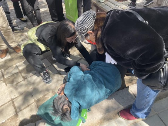 4月30日上午,振兴街道院校社区正在振兴小广场举办社区集市活动,社区书记任艳艳突然发现有位中年妇女焦急呼叫着一名晕倒在地的老人,周边还有路人围观。任艳艳立即跑向前去询问,第一时间拨打了120急救电话,并找到老人手机,赶紧拨通了其家人的电话,告知现场的情况。