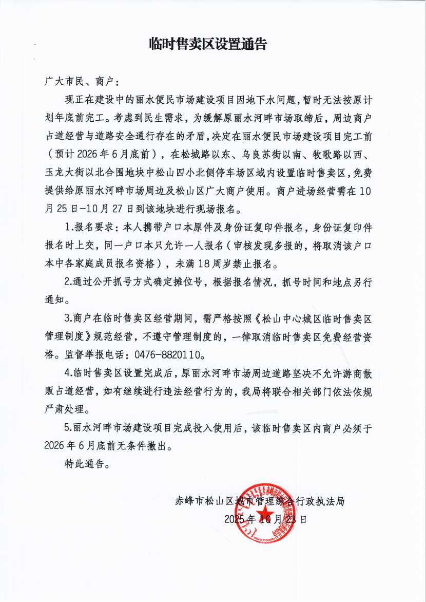 关于临时售卖区设置的通告