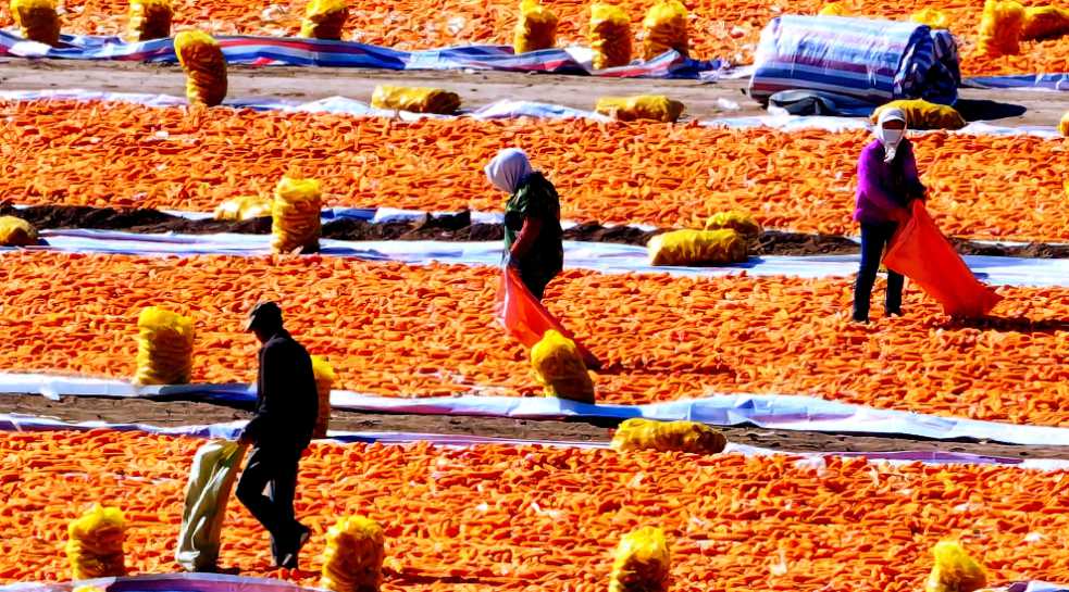 10月16日,内蒙古赤峰市松山区太平地镇八垦中村,农民正在进行玉米制种作业。(欧阳清风 摄)