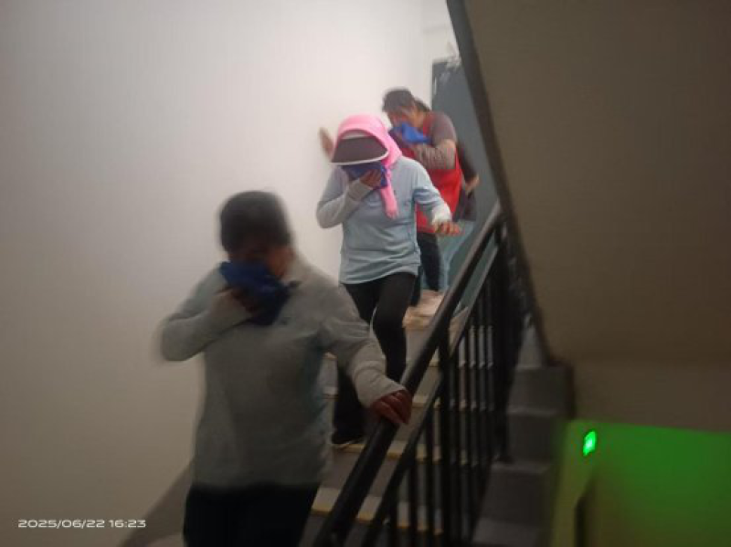 同时,演练设置了火场逃生模拟环节。在浓烟弥漫的模拟逃生通道内,居民们按照“弯腰低姿、捂住口鼻”的要领,有序疏散撤离,真实体验火灾发生时的紧张场景,进一步掌握正确逃生方法。