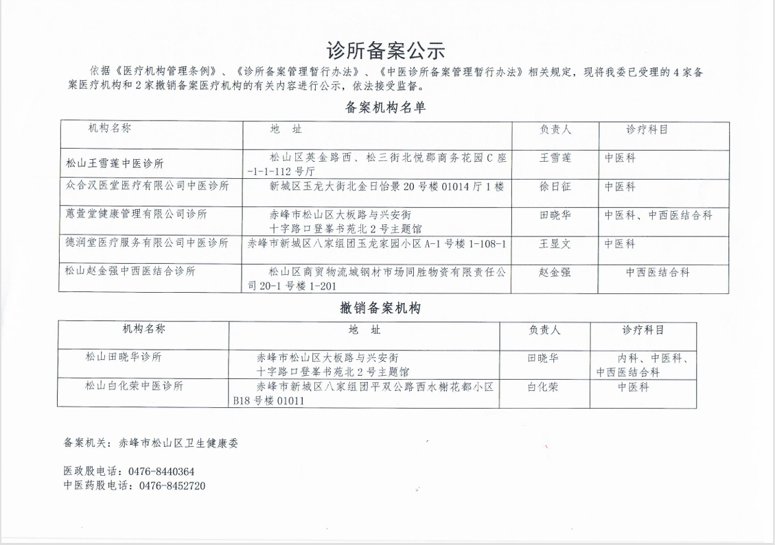 关于对5家诊所备案和2家诊所撤销备案的公示