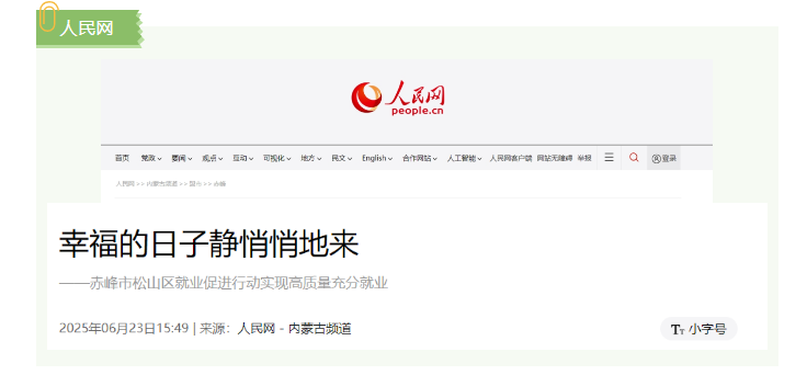 近日,人民网刊发了《幸福的日子静悄悄地来——赤峰市松山区就业促进行动实现高质量充分就业》一文。