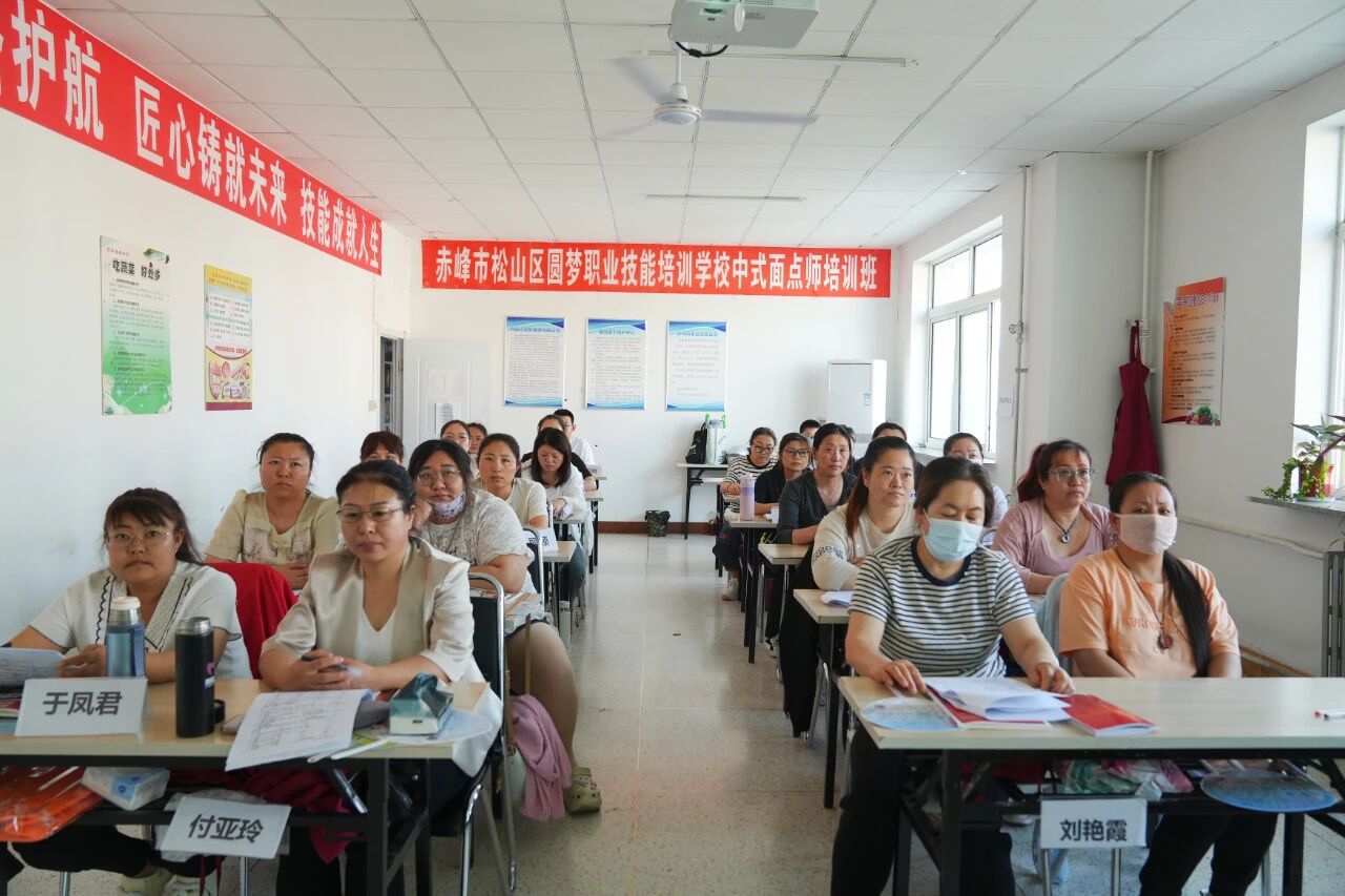 松山区圆梦职业技能培训学校对学员进行中式面点师培训。