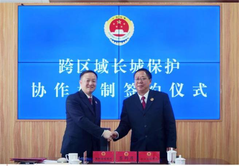 在此次踏查结束后,围绕长城遗址现状、保护措施以及长城保护检察公益诉讼协作等问题开展座谈交流会,双方共同签订了《党建共建合作意向书》《关于建立跨区域长城保护检察公益诉讼协作工作机制的意见(试行)》,为两地长城保护,跨区域文物文化遗产保护治理格局提供更加全面的法治保障。长城保护任重道远,仍需要我们在后续工作中加强保护管理,深入挖掘,阐释宣传好自治区长城特有的文化价值,保证中华民族优秀文化遗产的传承和发展。