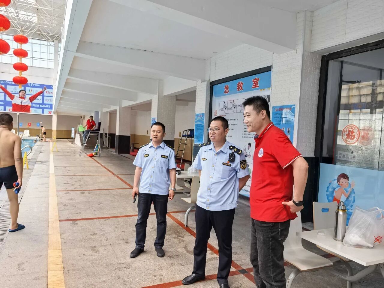 游泳场馆检查围绕“人、物、环境”三重维度展开。对救生员、救生器材、应急处置流程等内容,执法人员逐一核查救生员资格,确保从业人员资质;紧盯安全防控,检查救生器材完好情况、救生台数量、救生员在位情况,严防事故发生;同步整治消防通道堵塞、消防器材过期等问题,消除各类安全隐患。