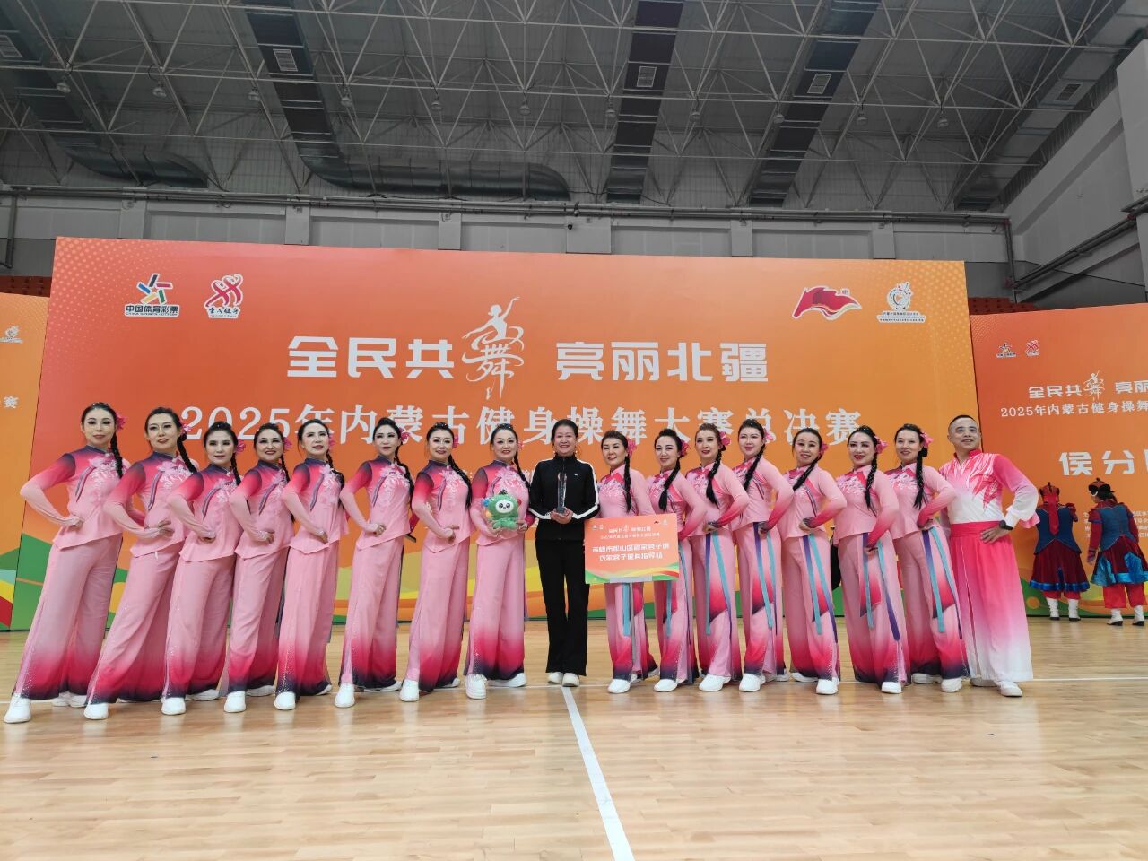 11月29日,由内蒙古自治区体育总会主办的“全民共舞 亮丽北疆”2025年内蒙古健身操舞大赛总决赛在呼和浩特市落下帷幕,赤峰市松山区穆家营子镇衣家营子健身指导站吉娜舞蹈队的《幸福日子感党恩》,凭借惊艳表现,从全区各盟市17支精英队伍中脱颖而出,一举摘得大赛特等奖,为北疆赛场献上了一场独具赤峰特色的“舞”林盛宴。